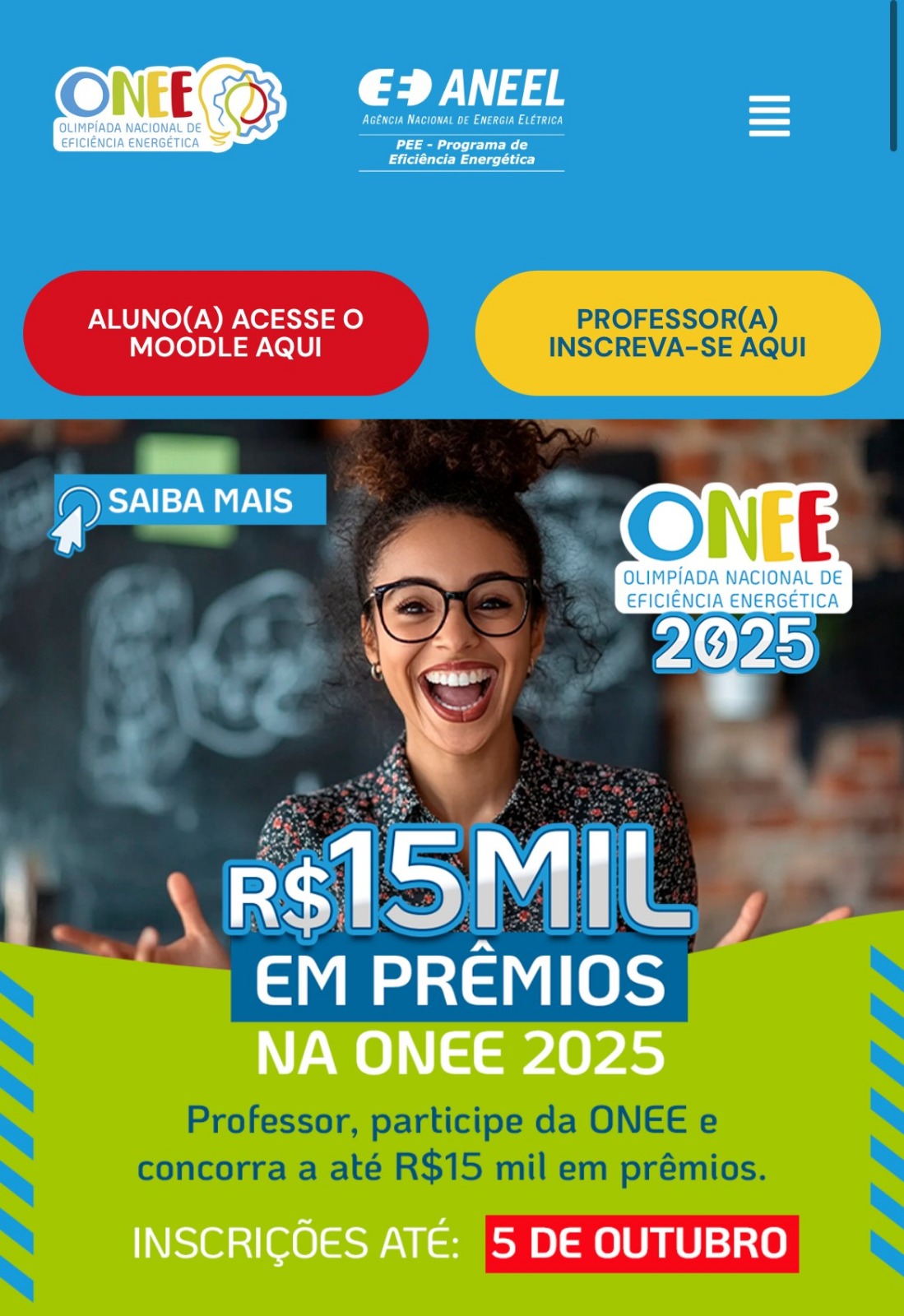As inscrições para a Olimpíada Nacional de Eficiência Energética (ONEE) 2025 vão até esta semana, dia 5 de outubro, e podem ser feitas gratuitamente pelo site www.onee.org.br. A competição inclui desafios online e interativos, além de estimular o aprendizado sobre sustentabilidade e eficiência energética, alinhados à Base Nacional Comum Curricular (BNCC).