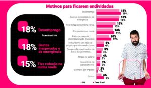 Segundo a pesquisa, na região Centro-Oeste, o desemprego também é a principal causa do endividamento (18%), seguido de gastos emergenciais (18%) e redução de renda (15%). O levantamento também revelou que 52% das pessoas já estiveram endividadas em algum momento da vida, enquanto 6% deste total não conseguiram pagar nem as contas básicas.