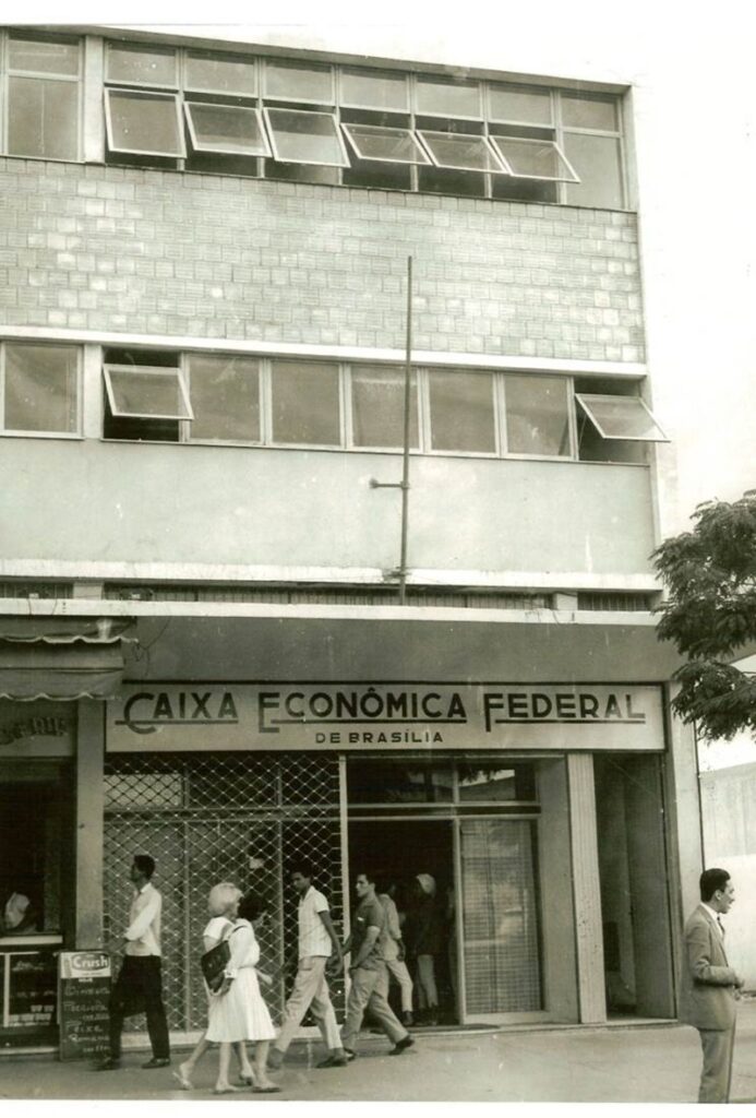 Antes mesmo da consolidação como sede do governo federal, a Caixa já atuava no suporte financeiro e operacional do projeto urbano. Em meio aos canteiros de obras, a instituição utilizava agências volantes para garantir serviços bancários básicos aos chamados “candangos”, trabalhadores que migraram de diversas regiões do país para construir a nova capital.