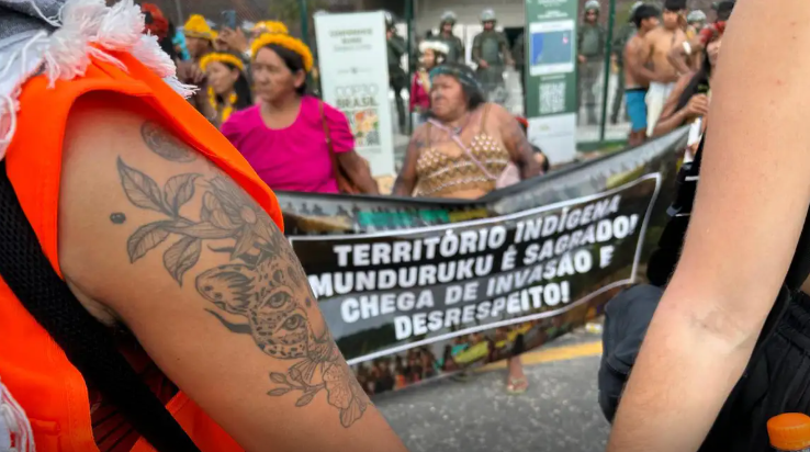 Por volta das 5h40 da manhã, um grupo de 90 indígenas da etnia Munduruku ocupou a área externa de acesso à Zona Azul – espaço reservado aos negociadores e pessoas credenciadas no evento.