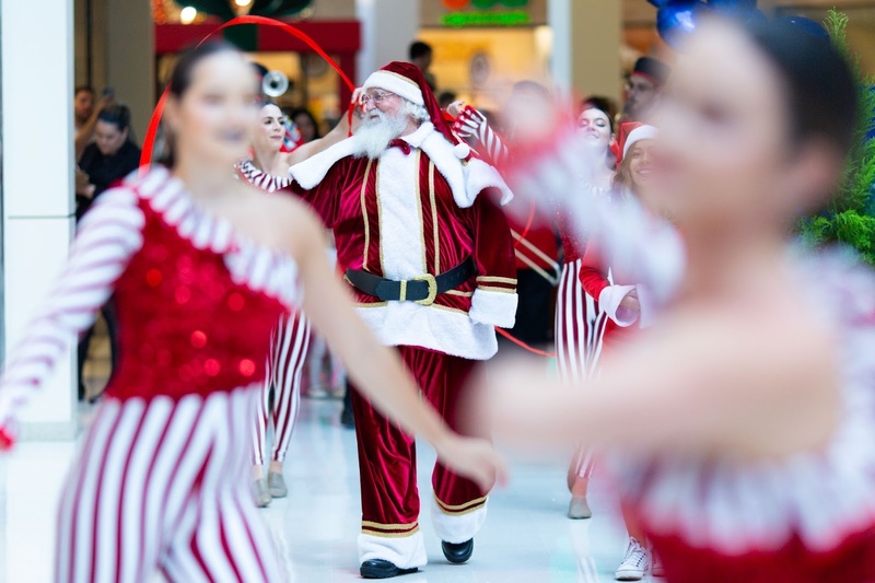 Ao longo da tarde, uma fanfarra percorre os corredores do shopping acompanhada por patinadoras, ginastas e bailarinas, levando o clima festivo a todos os espaços.