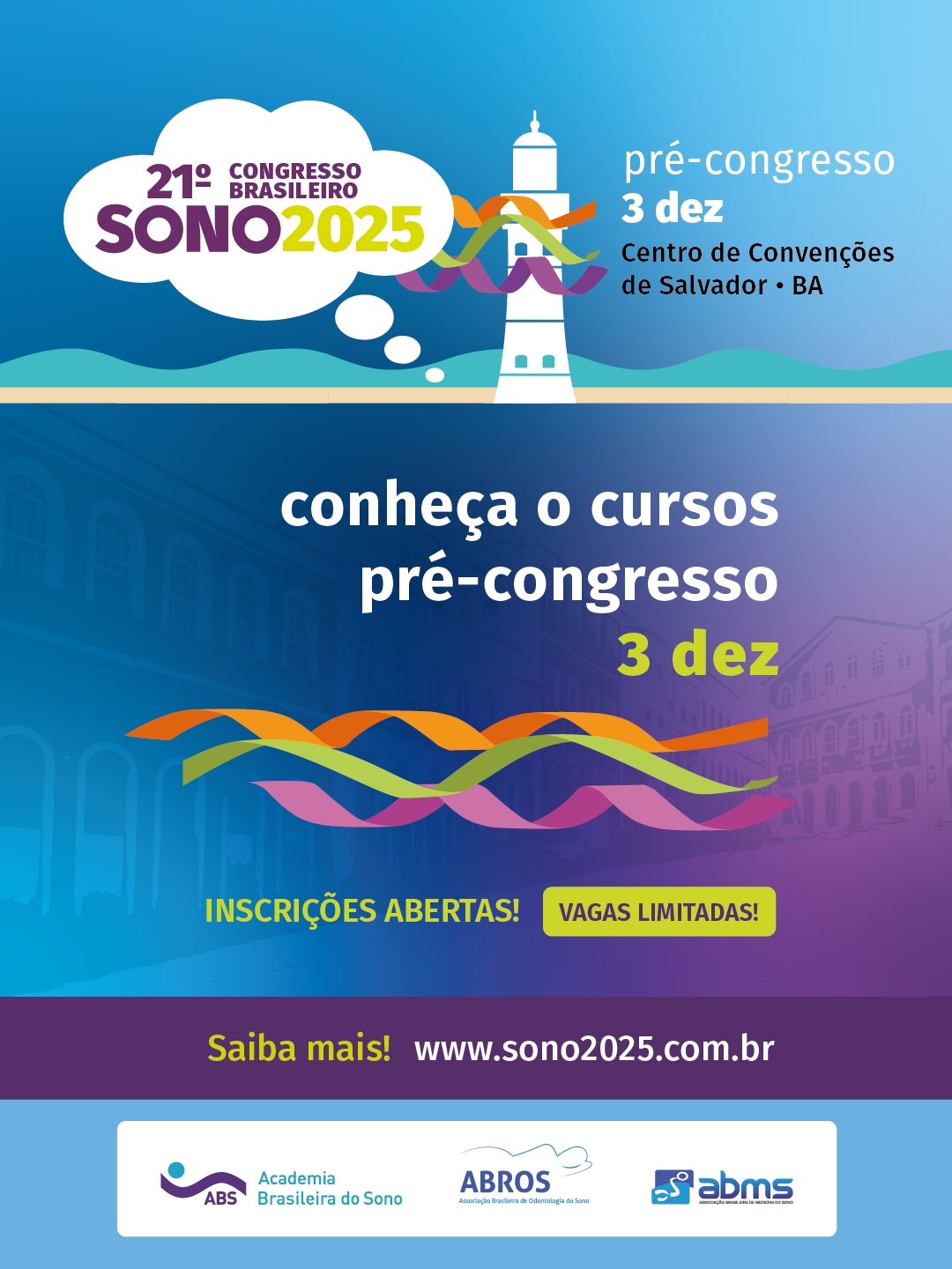 A Academia Brasileira do Sono (ABS) convida os médicos a participar do Congresso da Associação Brasileira de Medicina do Sono (ABMS), que abrirá oficialmente o XXI Congresso Brasileiro do Sono, de 3 a 6 de dezembro de 2025, no Centro de Convenções de Salvador. O evento integra a programação científica da ABS, reunindo a ABMS e a Associação Brasileira de Odontologia do Sono (ABROS) em um dos principais encontros nacionais e internacionais de atualização e troca acadêmica entre profissionais da saúde que atuam no cuidado ao sono.