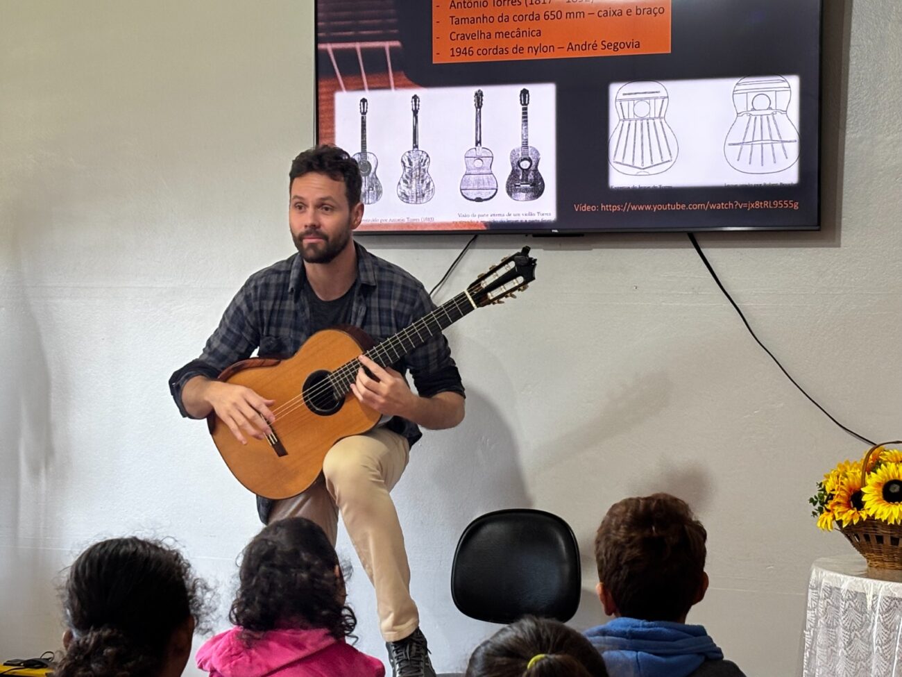 A atividade integra o projeto “O Caminho das Seis Cordas”, que apresenta a trajetória do instrumento em concertos didáticos e ações formativas. “O público terá a oportunidade de entender o trajeto deste instrumento tão popular, suas origens, repertório e evolução, conhecendo também diversas curiosidades” disse Evandro.