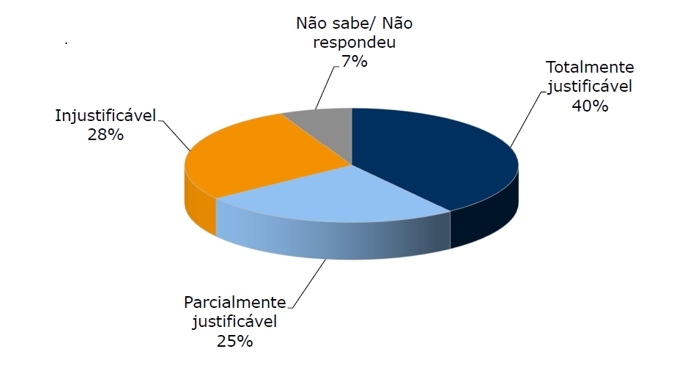 Questionados sobre a letalidade deste tipo de operação, 40% consideram o alto número de mortes totalmente justificável, pois demonstra uma ação forte do Estado; 25% acham que é parcialmente justificável, visto que, apesar da boa intenção, o número de mortes é assustador e 28% classificam como injustificável, por representar um fracasso da política de segurança e uma violação dos direitos humanos. Para completar, 7% não responderam à pergunta.