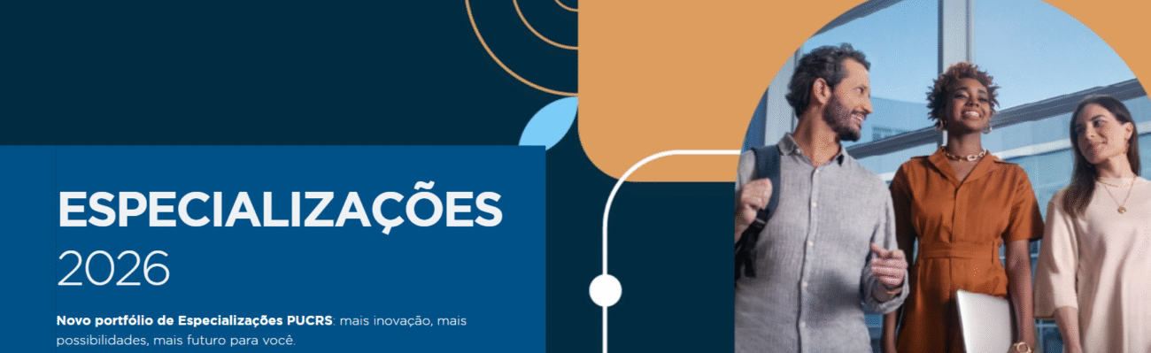 A PUCRS está com inscrições abertas para os cursos de Especialização (pós-graduação lato sensu) de 2026, voltados a profissionais que já possuem diploma de ensino superior e desejam aprofundar conhecimentos em sua área ou explorar novas frentes.