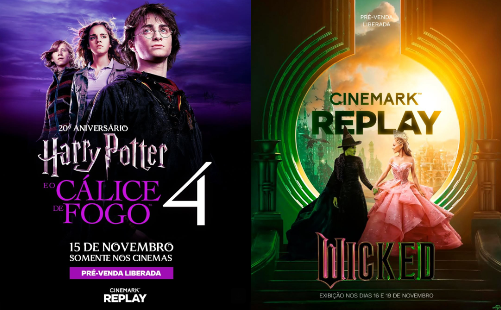 A Cinemark contará com o retorno da magia de Oz e dos bruxos de Hogwarts às telonas para sessões de reexibição. Em celebração ao lançamento da sequência, Glinda e Elphaba retornarão às telas em sessões limitadas de “Wicked: Parte I”, enquanto o bruxo de Hogwarts retorna para celebrar os 20 anos do lançamento do filme “Harry Potter e o Cálice de Fogo” em uma data única. A iniciativa integra o Cinemark Replay, selo que consiste no relançamento de grandes sucessos e clássicos do cinema queridos pelo público, acompanhados pelo melhor da tecnologia e conforto presentes nos complexos da Rede.