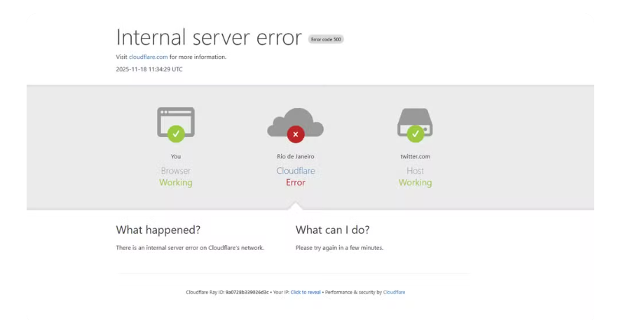 Na manhã desta terça-feira (18), a rede social X e o ChatGPT apresentaram instabilidades que podem estar relacionadas a problemas nos sistemas da empresa de serviços de nuvem da Cloudflare.